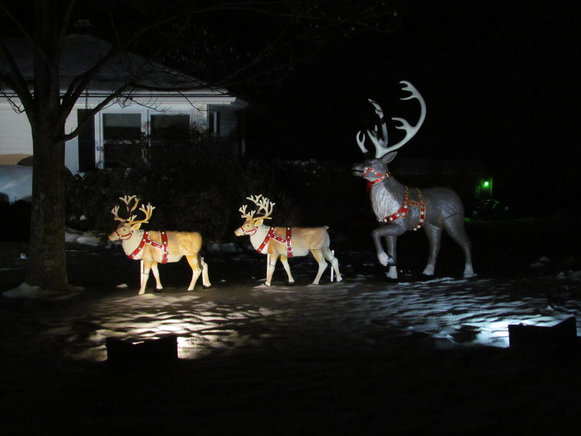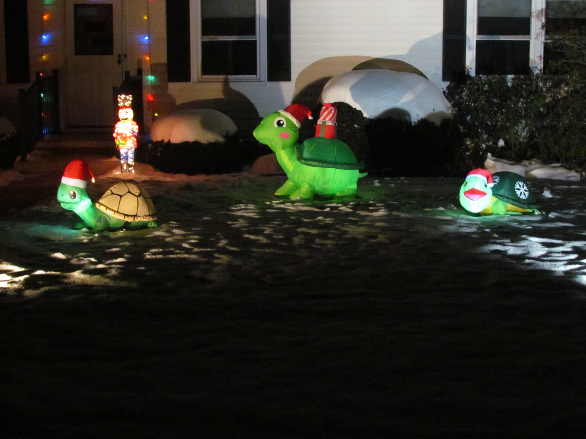 Not really lights but here are my turtles and reindeer. The weather here hasn’t allowed me to get pictures of the lights and rest of the decorations yet.