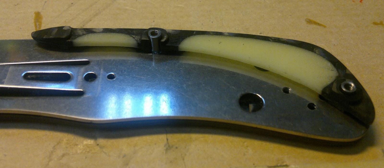 My Boker plus mini Tech with the CountyComm scales (their UGM glow stuff is pretty good) is banned from the “junk” shelves in the bedroom because it glows too brightly