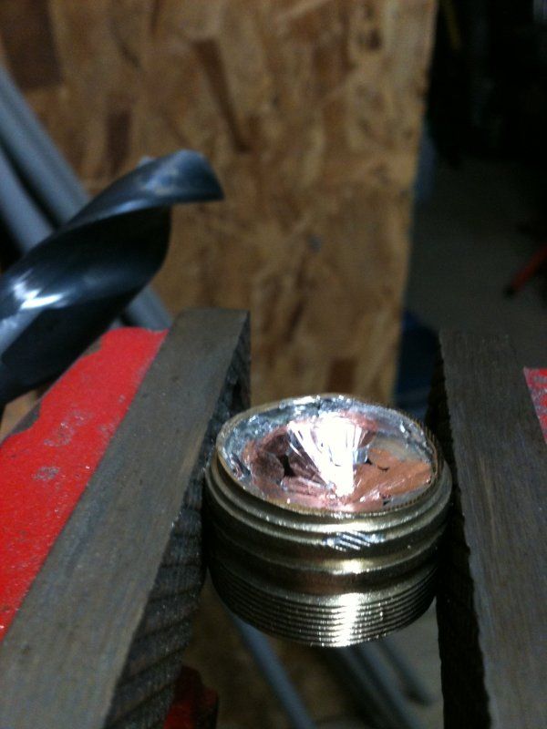 Here's what my heatsink looked like after I filled it with 4AWG solid copper wire and solder and drilled a depression with a 3/4" drill bit for the driver to sit in: