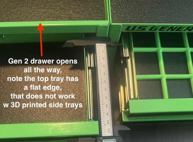 the difference is the slide stop is shorter on the new version. if you want to just modify your Gen1 box, here is an STL that allows you to change how far the Gen 1 drawers open