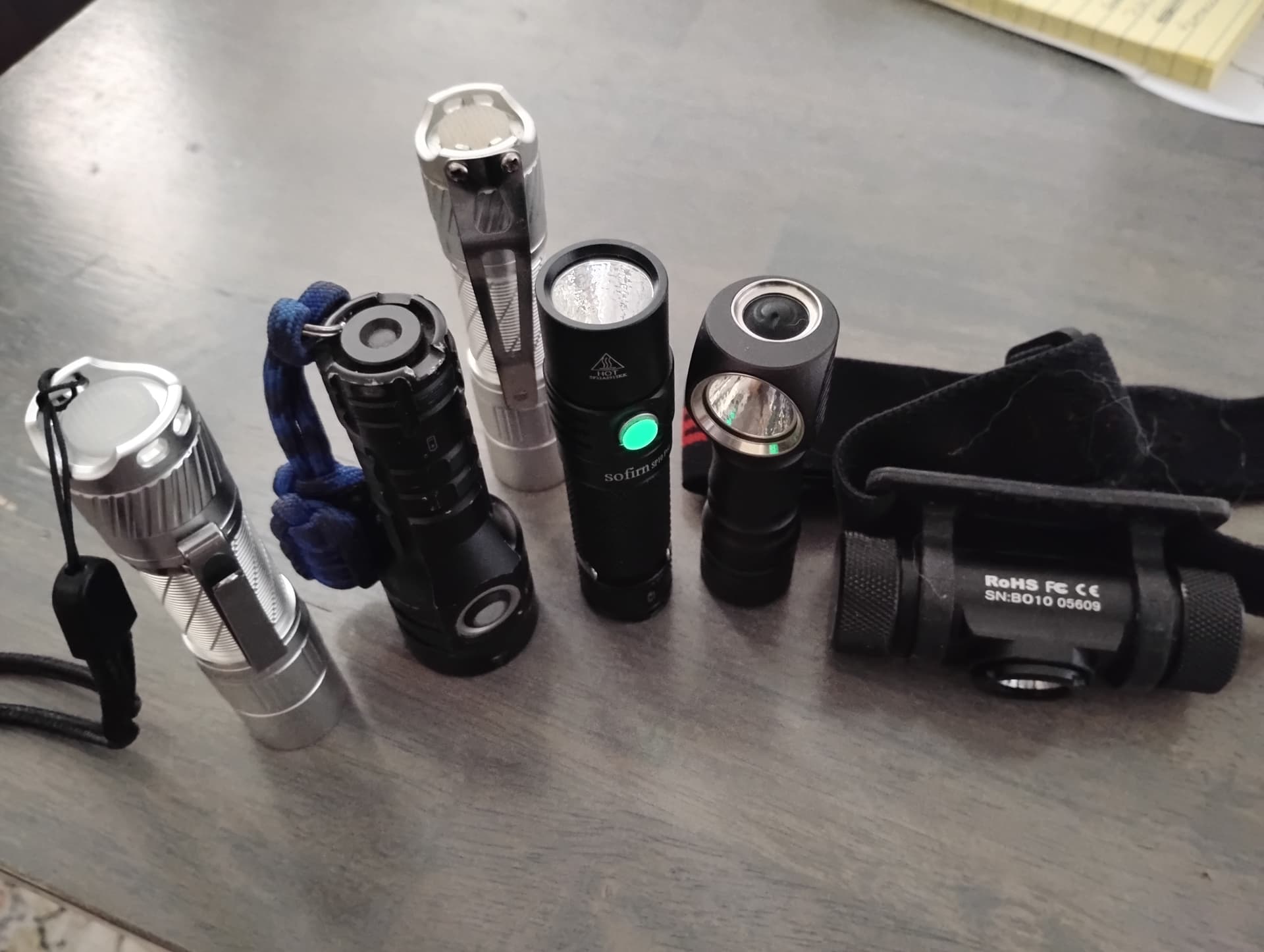 I’m still a big user of AA. What’s near the work center today is Convoy T3, Thrunite TH20, Zebralight H54, Wuben E6, Sofirn Sp10 Pro.