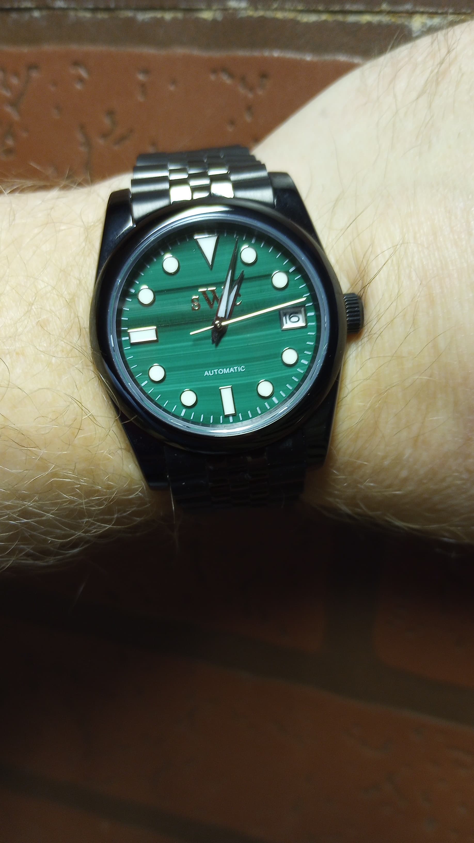 Genuine Malachite Stone Dial…thin lamination on brass base, very delicate, little nervous during assembly.