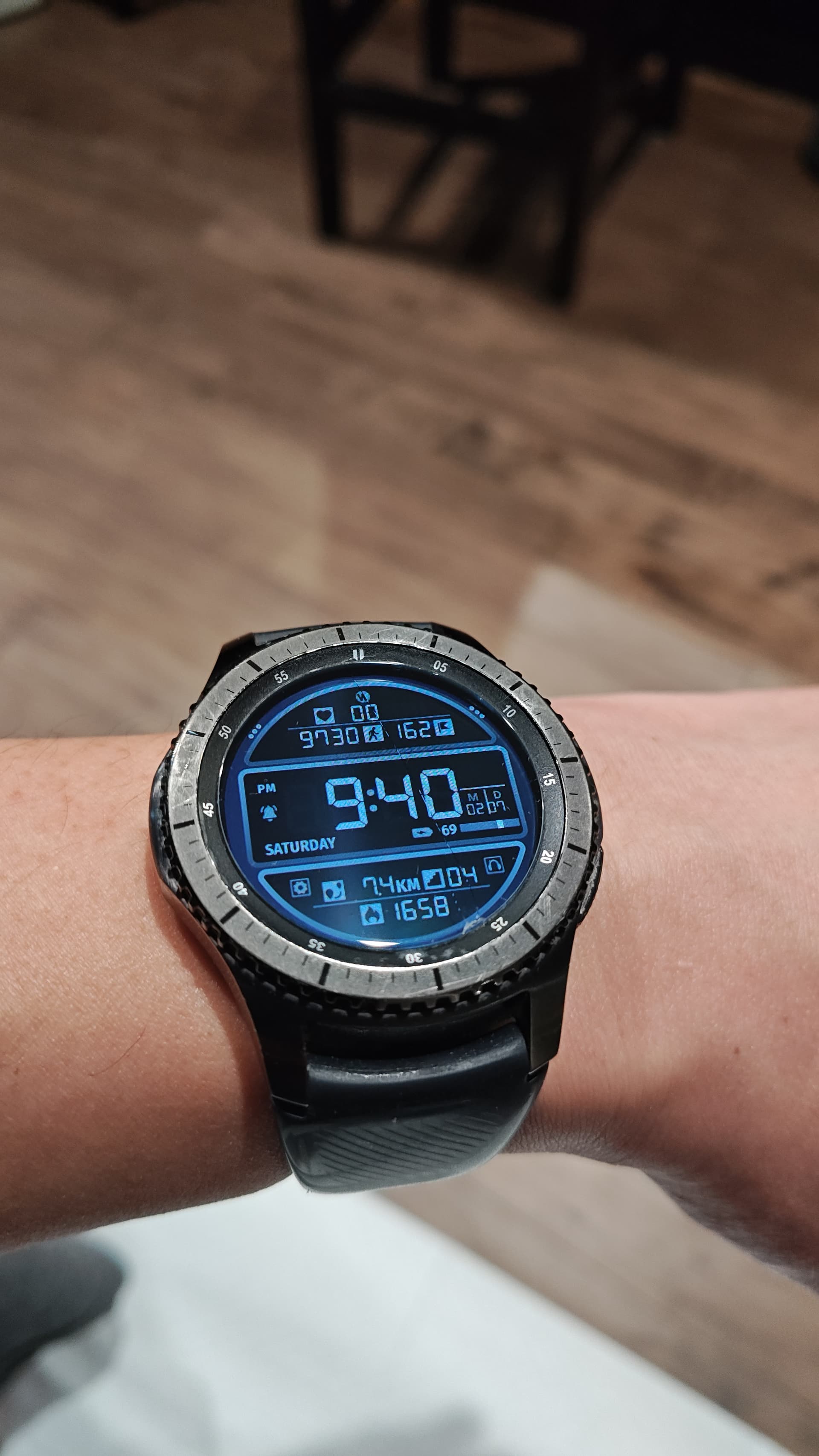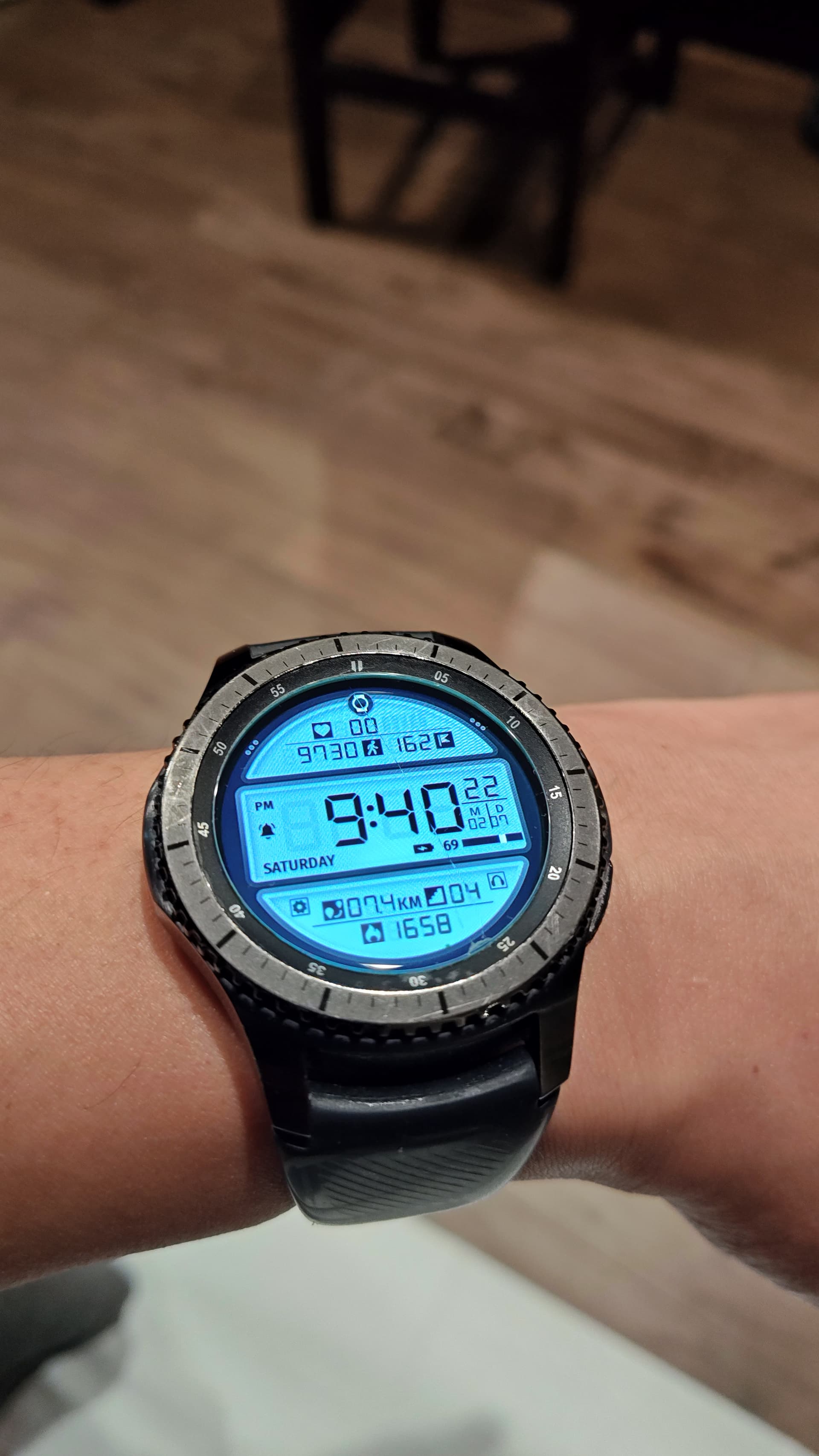 My first smart watch, Samsung Gear S3 frontier. Apparently no longer compatible with newer phones 2024 and up which blows. Turns me off of smartwatches since I dont even utilize it properly (tap and pay). It has a white screen that acts as a flashlight so I guess there’s that if I had absolutely no other light on me even a phone.