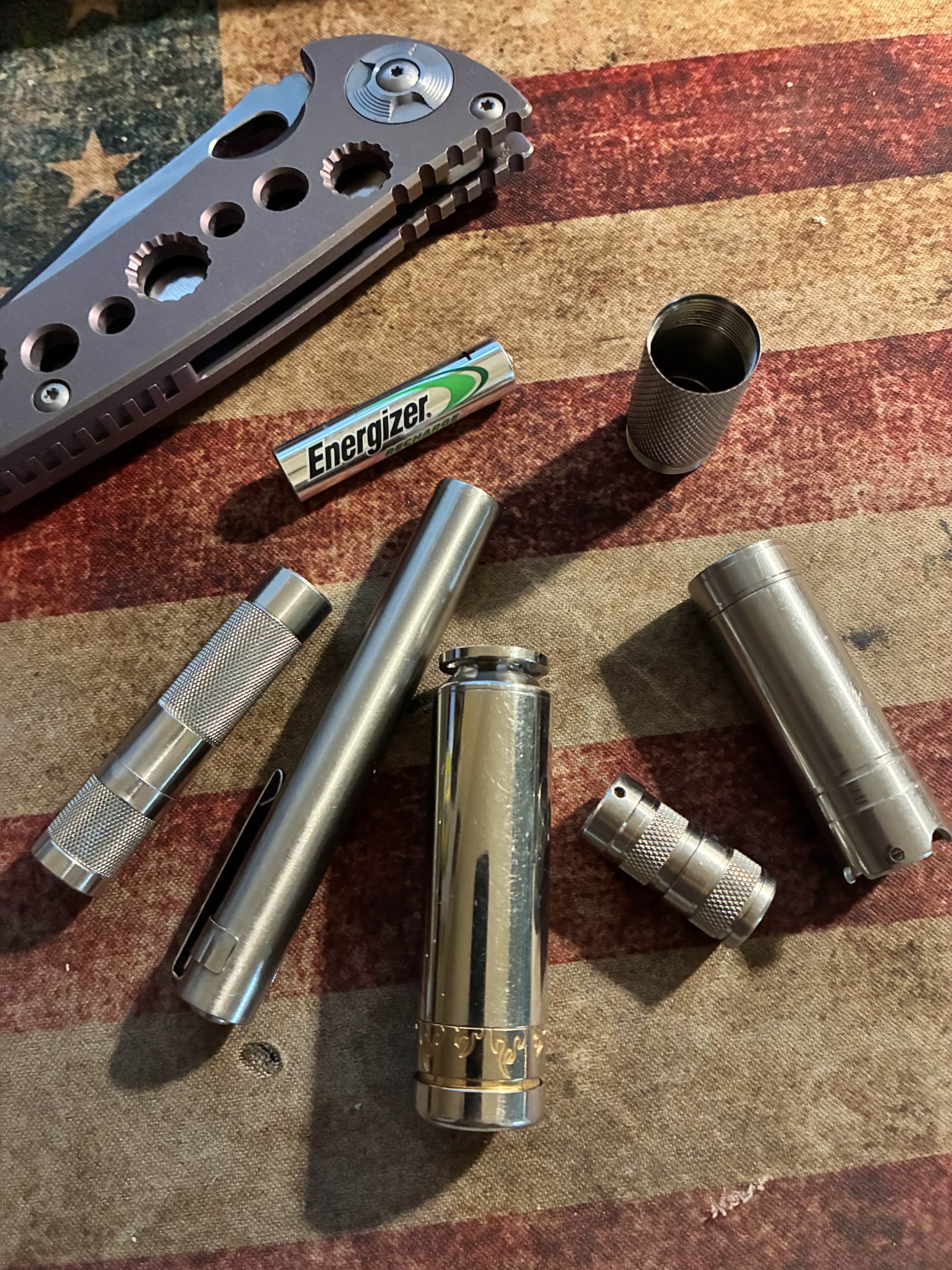 3 of them in there. Tiny aaa, Slim aa and the spy. I was on a DQG kick there for a minute. Think i have a first gen tiny aaa and a few 18650’s. I know the 18650 was the smallest 18650 light for a long while. Don’t know if it still is.