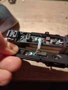 Sideswitch/ thumbwheel assembly operates a tiny SMT rotary encoder with a built in button, the shaft passes through a greased stuffing box- unlike the slider switch this control is not magnetic but penetrates the chassis.