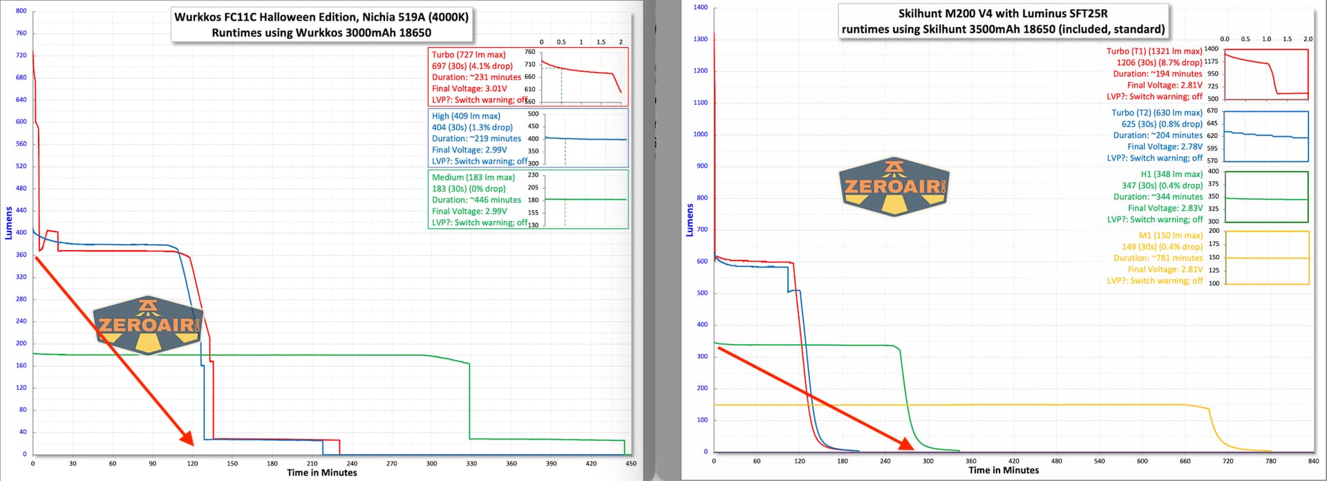 THe FC11C of zeroair review is the 4000K version. I see a chart from FC11C 5000K version of 1lumen, i think 5000K is better in lumens but runtime is the same the 4000k version.