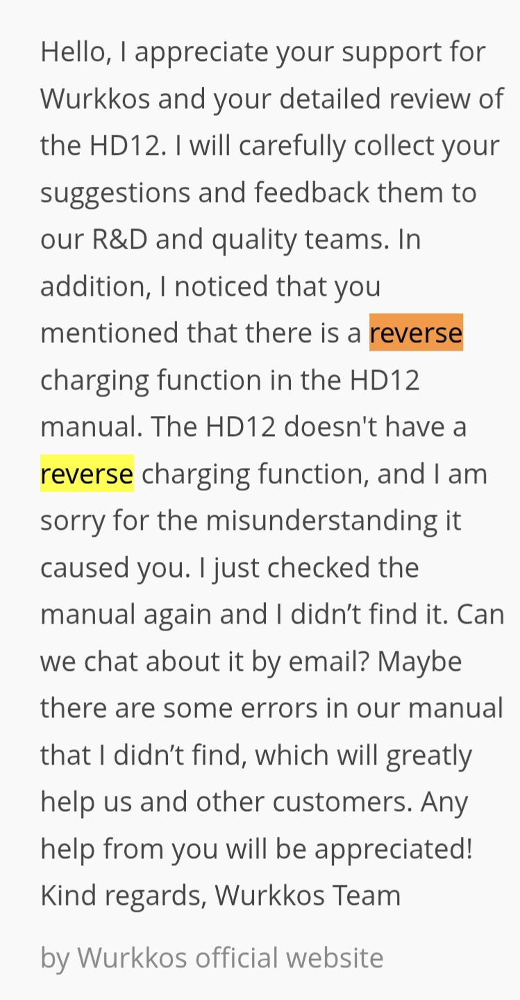 Workkos HD12 manual mentions ‘reverse charging’. Is that the case? I’m a week away from getting it…