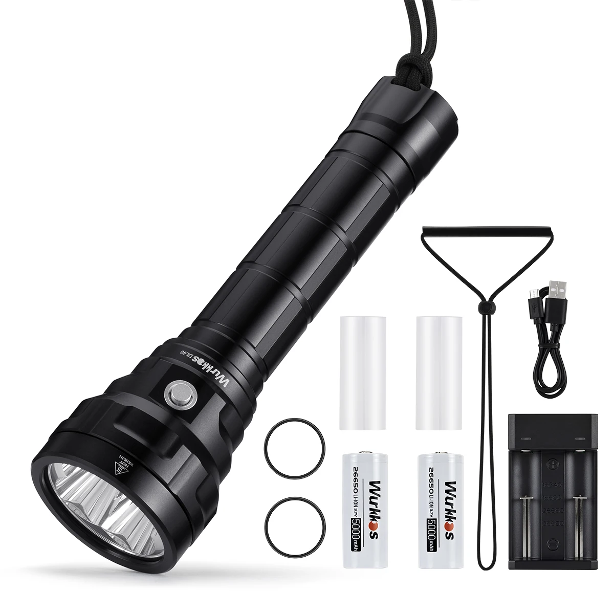 I do not dive, but a dual 26650 light that is very waterproof might still be handy. OTDP for me after Coupon and taxes was 77.03. Since it comes with batteries, if they are decent, it is a fairly good price. 13000 lumens max with ATR that is not on a timer. I think I will like this one. It also has decent throw of 505 meters max, but not really a thrower. I have been fairly impressed by some of my wurkkos lights.