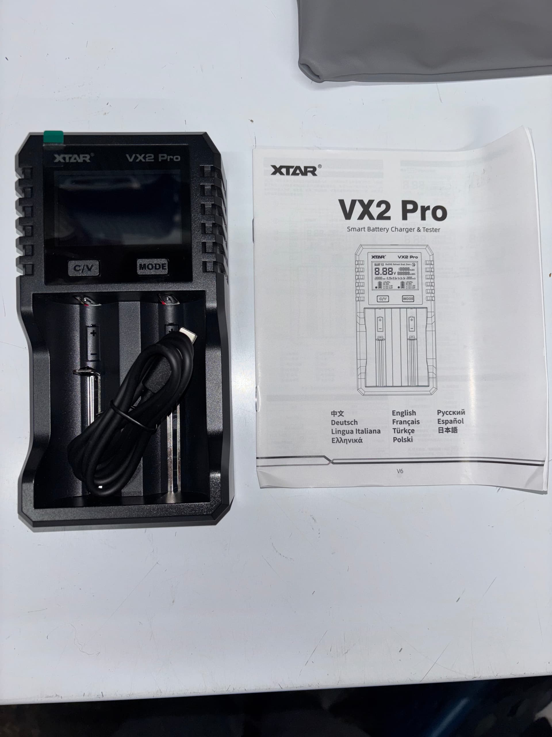 It was also in this nice drawstring soft bag for storage or travel I guess. Includes full manual in quite a few languages shown in the picture, which details how the charger functions.